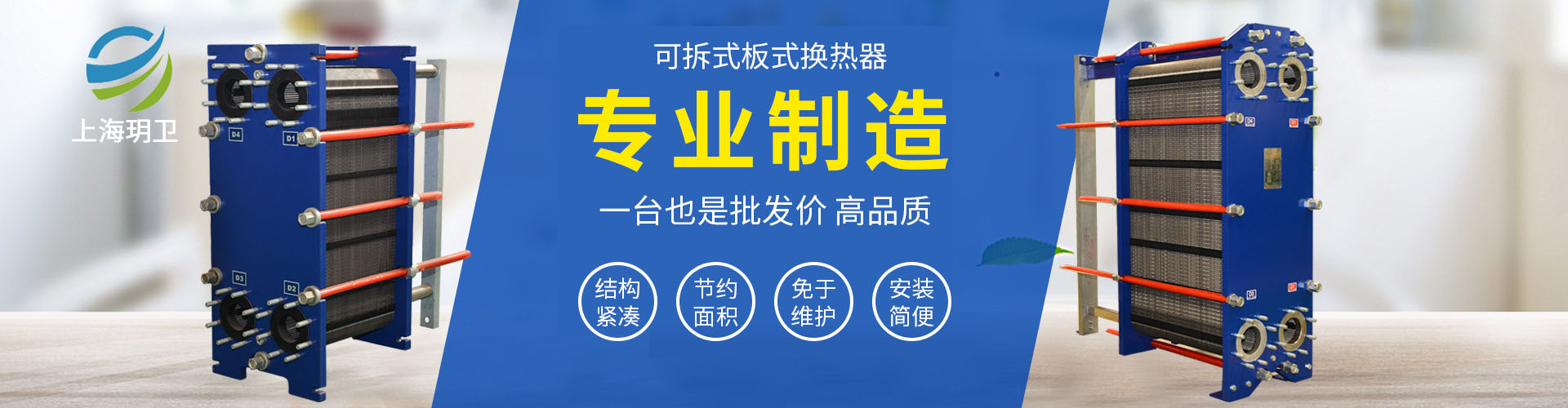 上海玥卫机械设备有限公司致力于换热器业的发展,专业从事可拆板式换热器、全焊接式板式换热器、钎焊式板式换热器、板式换热器机组、管式换热器、蒸发器、冷凝器等换热设备的设计生产、制造定制、技术改造、产品升级及销售、维护保养、检测维修一站式服务!并提供国内外主流换热器板片、胶垫等配件!公司拥有雄厚的技术力量和设备加工制造能力及12000吨油压机等重要设备,不断开发出具有国际先进技术水平的新产品。公司产品广泛适用于化工、化肥、制药、石油、钢铁、酒精、食品、饮料、印染、电力、涂装、电子网板、橡胶、住宅取暖、宾馆等部门,能满足其加热,冷却,冷凝,及热回收等各工艺的要求。公司内部实行网络化管理,依托先进的计算机辅助设计系统和计算机管理系统,实现规范化运作,在最短的时间内为用户提供高品质的产品。公司本着技术领先、质量第一、客户至上的原则为广大用户提供满意的服务。竭诚欢迎广大客户来电咨询!